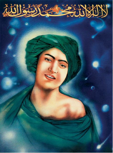 Malgré l'interdiction – relative – de la représentation de la figure humaine en islam, et plus spécialement de la famille du Prophète, des images en couleurs d'Ali, le gendre de Mahomet, et de ses fils Hassan et Hussein, représentés dans un registre populaire, ne sont pas rares en Iran. Le chiisme iranien semble plus tolérant sur ce point que l'orthodoxie sunnite.
